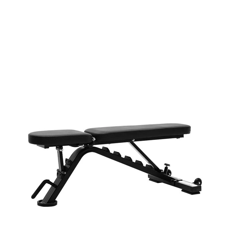 Compra en Decathlon BANCO DE MUSCULATION AJUSTABLE – Profesional Este banco ajustable de alta calidad te permite entrenar al máximo rendimiento ajustando el ángulo de 0º a 90º, con 6 ajustes en la parte trasera y 3 en la zona del banco.