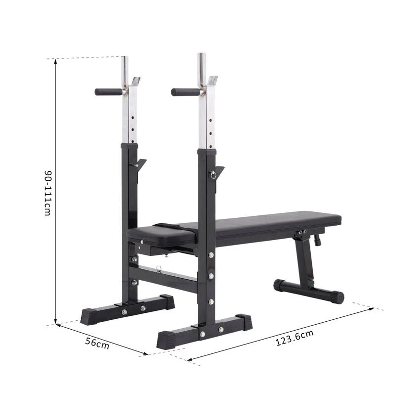 Compra en Decathlon Banco de pesas HOMCOM negro altura ajustable 123,6x56x111 cm Banco de musculación HOMCOM multifuncional para un entrenamiento de toda la musculatura. Es útil para pesas y entrenamiento con barra y abdominales.