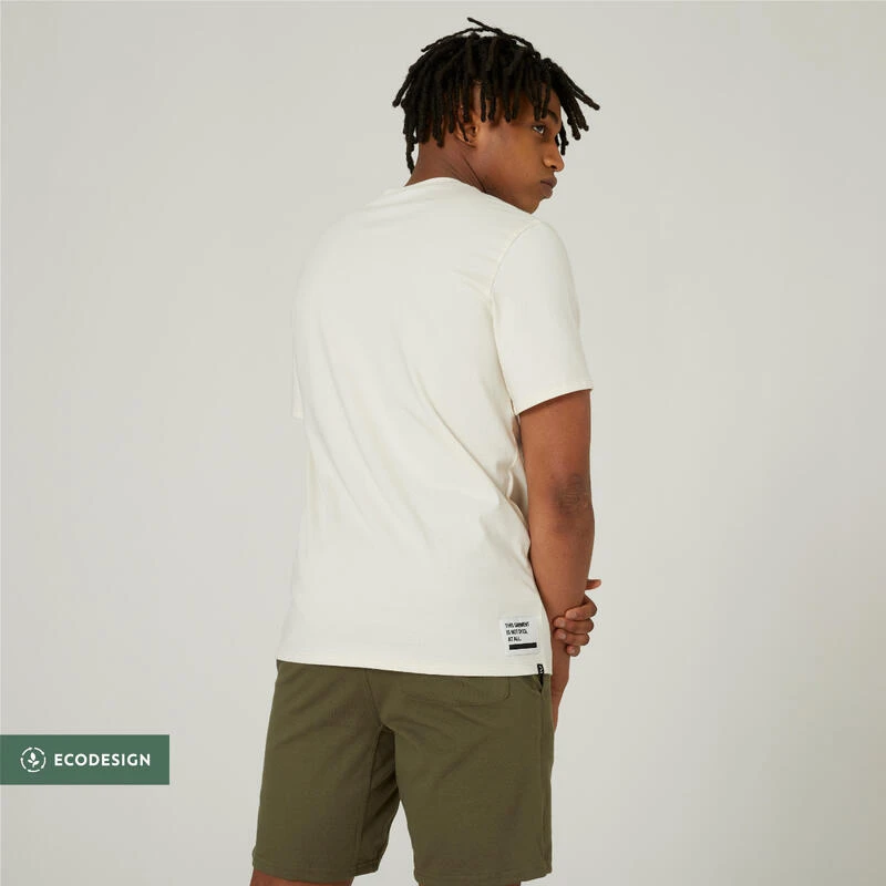 Compra en Decathlon Camiseta Fitness 500 Hombre No Dye Regular Hemos elegido este básico, blanco, mayoritariamente de algodón… ¡sin teñir! ¿Por qué? Para reducir nuestras emisiones de CO2 en un 30 % y nuestro consumo de agua en un 70 %.