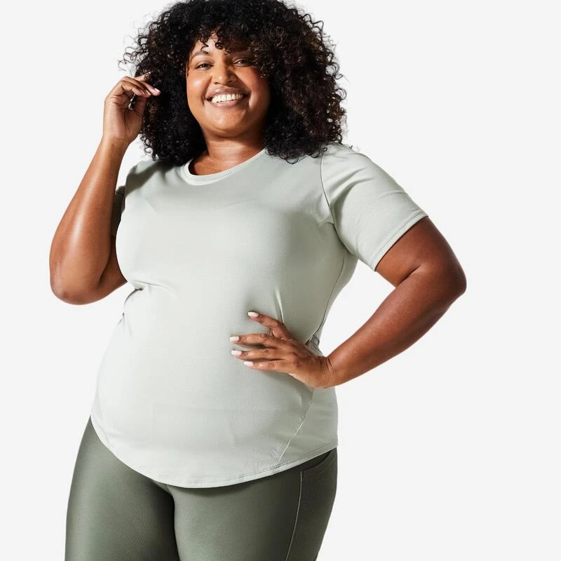 Compra en Decathlon Camiseta Fitness Cardio talla grande ajustada Mujer Domyos Es la camiseta de manga corta, con corte ceñido y tejido transpirable, que todas necesitamos para practicar a una actividad deportiva.