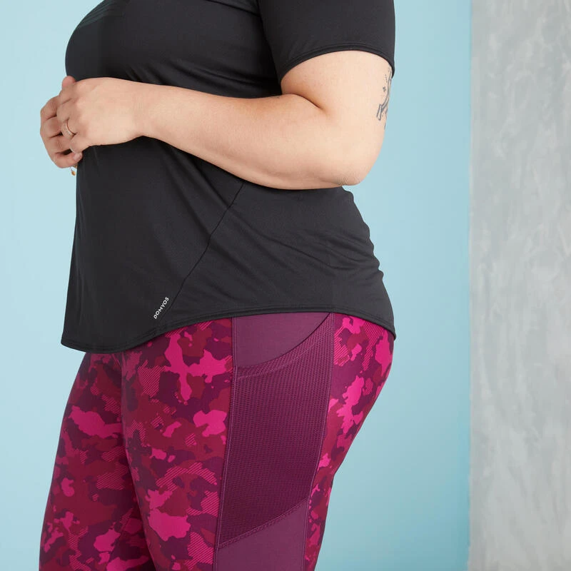 Camiseta Fitness Cardio Talla Grande Ajustada Mujer Domyos Negro