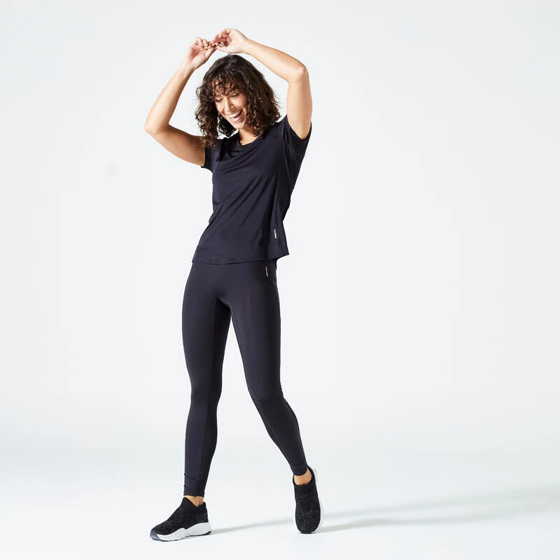 Camiseta Fitness Manga Corta Corte Entallado Mujer Domyos Negro