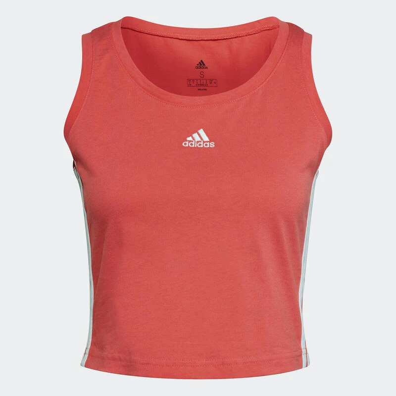 Compra en Decathlon Camiseta fitness sin mangas algodón Mujer Adidas salmón Camiseta crop top de tirantes para tus looks del día a día o para tu práctica deportiva. Asegura libertad de movimientos y gran comodidad.