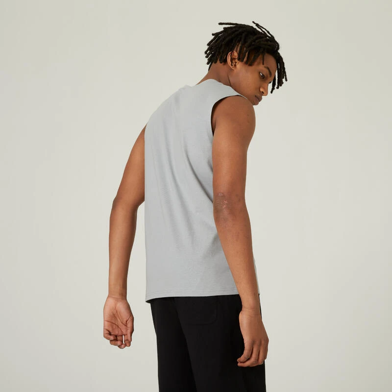 Camiseta Sin Mangas Fitness 500 Hombre Gris Extensible