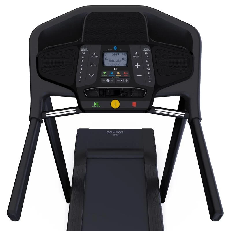 Compra en Decathlon Cinta correr plegable T900C 18km/h 50×143cm Cinta de correr plegable con una velocidad máxima de 18 km/h e inclinación de hasta 10%. Superficie útil de 50cm de ancho y 143 de largo. ¡Ideal para casa!