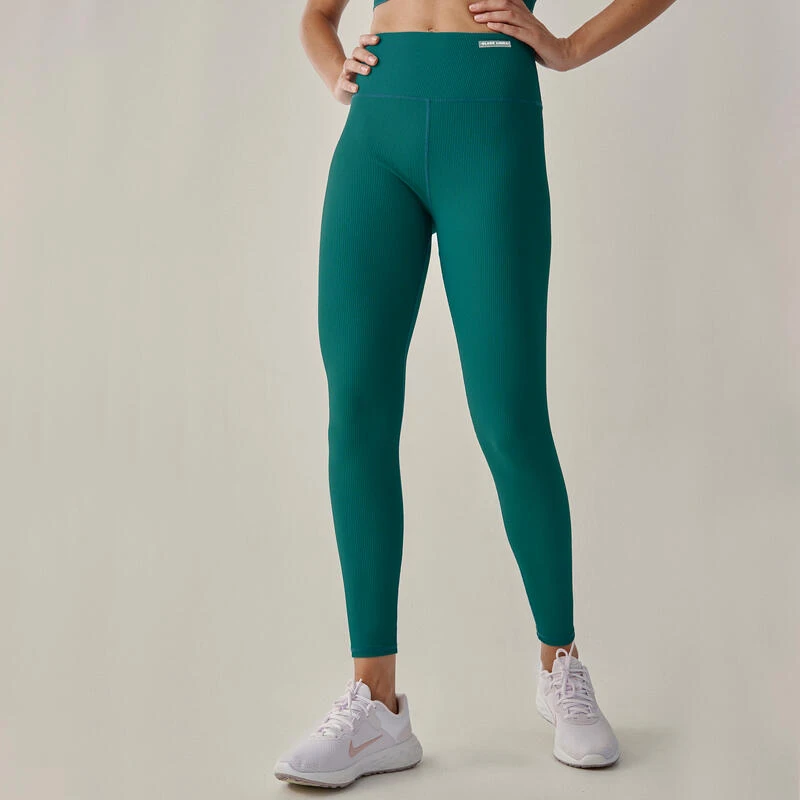 Compra en Decathlon Conjunto deportivo Top + Legging Jari de canalé de mujer Black Limba Set en tejido de canalé súper suave y elástico. El top deportivo de sujeción media estilo crop top incorpora un sujetador con relleno ligero extraíble. El legging es de cintura media y largo 7/8.