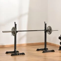 Soporte Para Barras De Pesas HOMCOM De Acero 50x49x124-154 Cm Negro