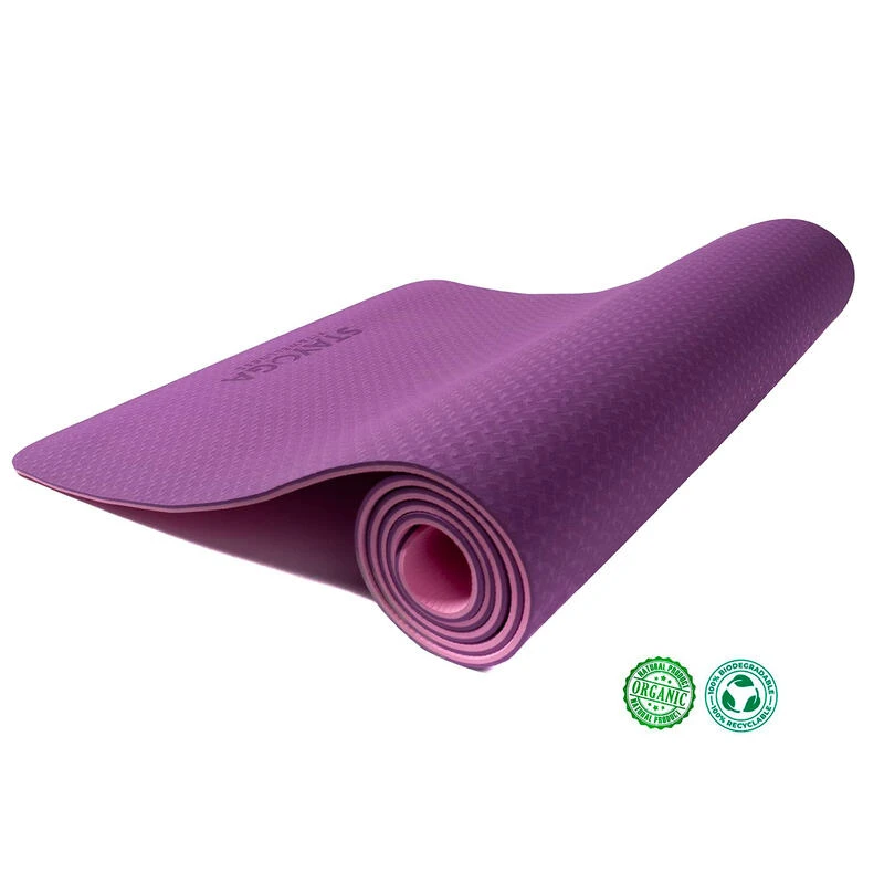 Compra en Decathlon Esterilla de Yoga Antideslizante Bicolor TPE Lila – Rosa (Ecofrendly) Esterilla de Yoga Antideslizante TPE Bicolor Lila – Rosa de 183x61x0,9cm. Ideal para Todos los Niveles. Producto 100% Natural.