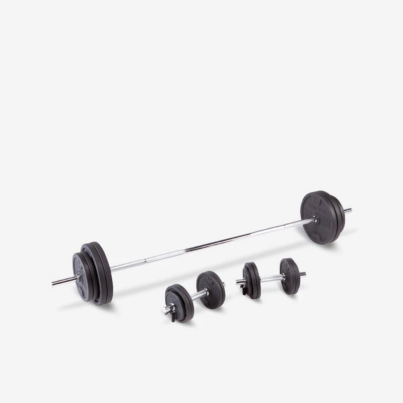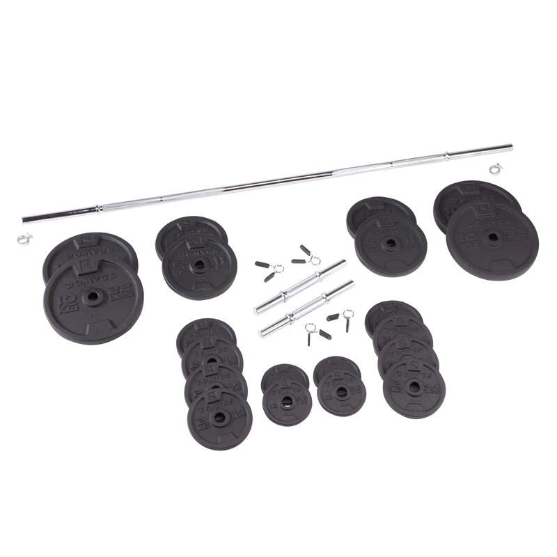 Compra en Decathlon Kit mancuernas y barras 93 kg musculación Corength Kit de mancuernas de 93 kg con discos y barras de 28 mm de diametro perfecto para tu entrenamientos más exigentes.