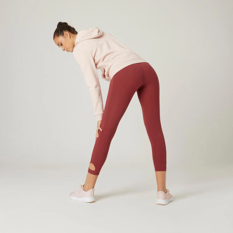 Leggings Mallas Fitness 7/8 Algodón Extensible Mujer Burdeos