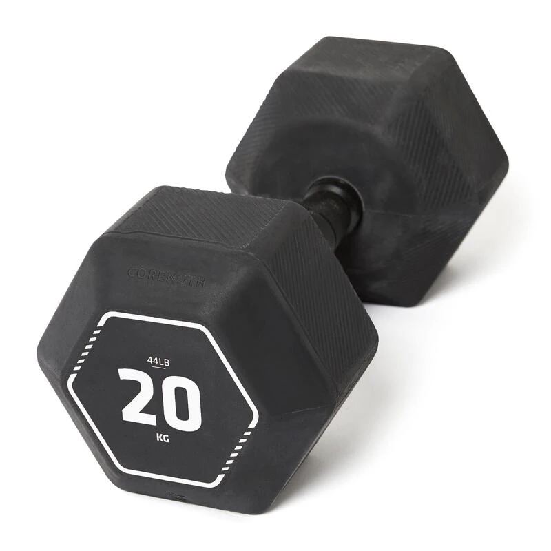 Compra en Decathlon Mancuerna 20 kg hexagonal dumbbell musculación cross training Corength Mancuerna de 20 kg polivalente, para movimientos de musculación y ejercicios funcionales o cross training. Su forma hexagonal ofrece una mayor estabilidad.