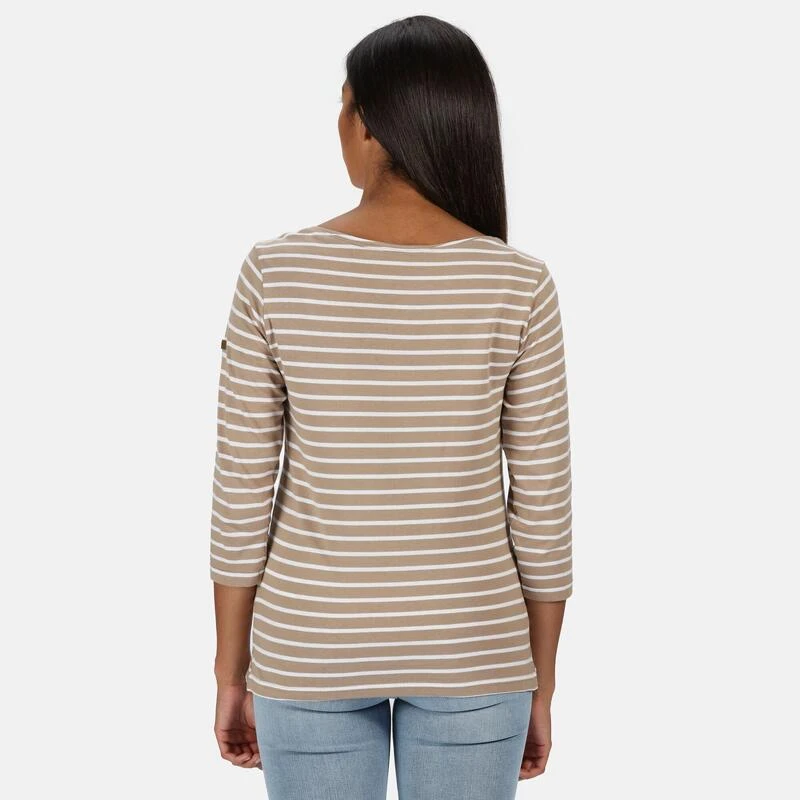 Regatta Camiseta Polina De Rayas De Manga Larga Para Mujer Nuez Moscada