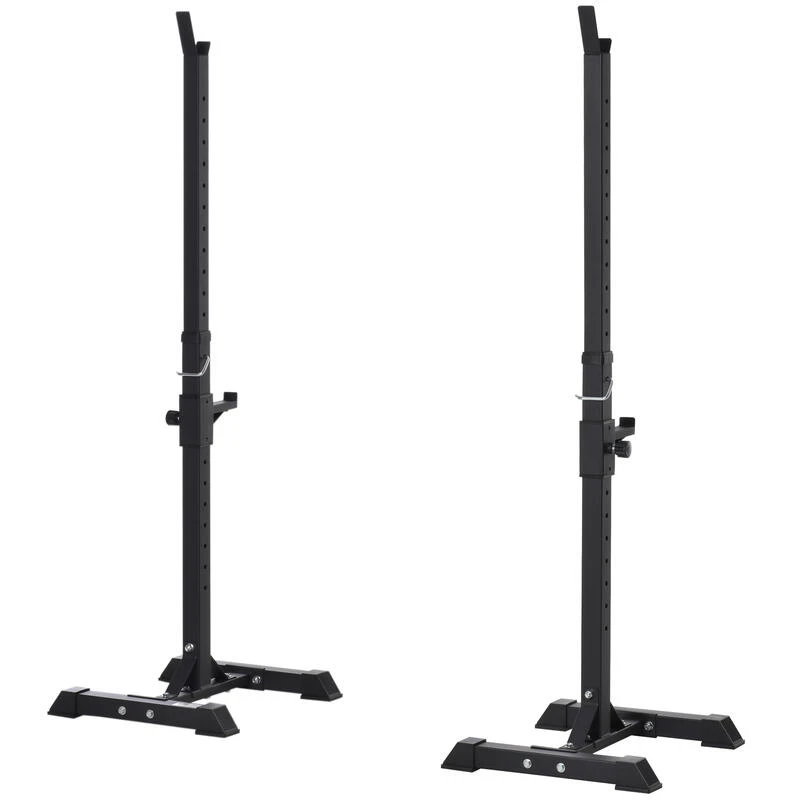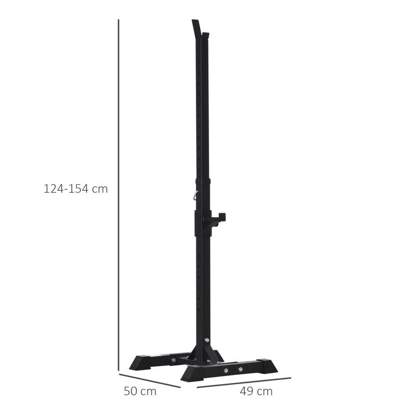 Compra en Decathlon Soporte para Barras de Pesas HOMCOM de Acero 50x49x124-154 cm Negro Disfruta de tus entrenamientos en casa con este par de soportes para barras de pesas de HOMCOM. Hechos de acero resistente, pueden soportar un total de 150 kg en conjunto.