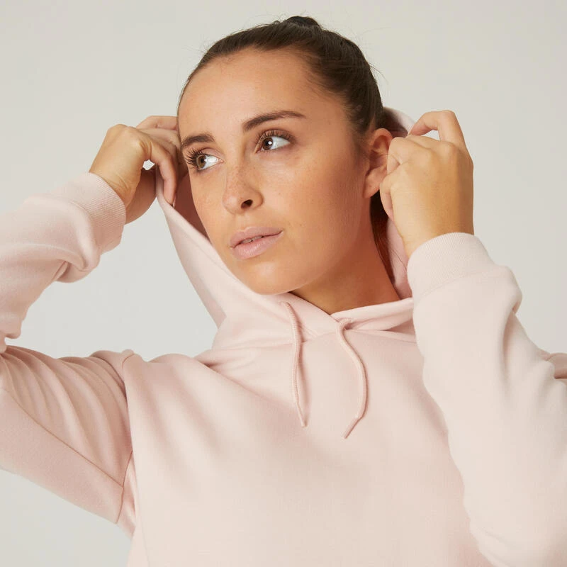 Compra en Decathlon Sudadera fitness con capucha Mujer Domyos 500 Nuestros estilistas han diseñado esta sudadera afelpada con capucha para mantenerte abrigada. Confort y suavidad natural gracias a las fibras de algodón.