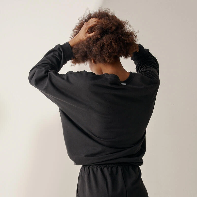 Compra en Decathlon Sudadera Tara Oversize de mujer Black Limba Sudadera fina de cuello redondo y manga larga acabada en puño. Detalle de logo bordado en la parte delantera.