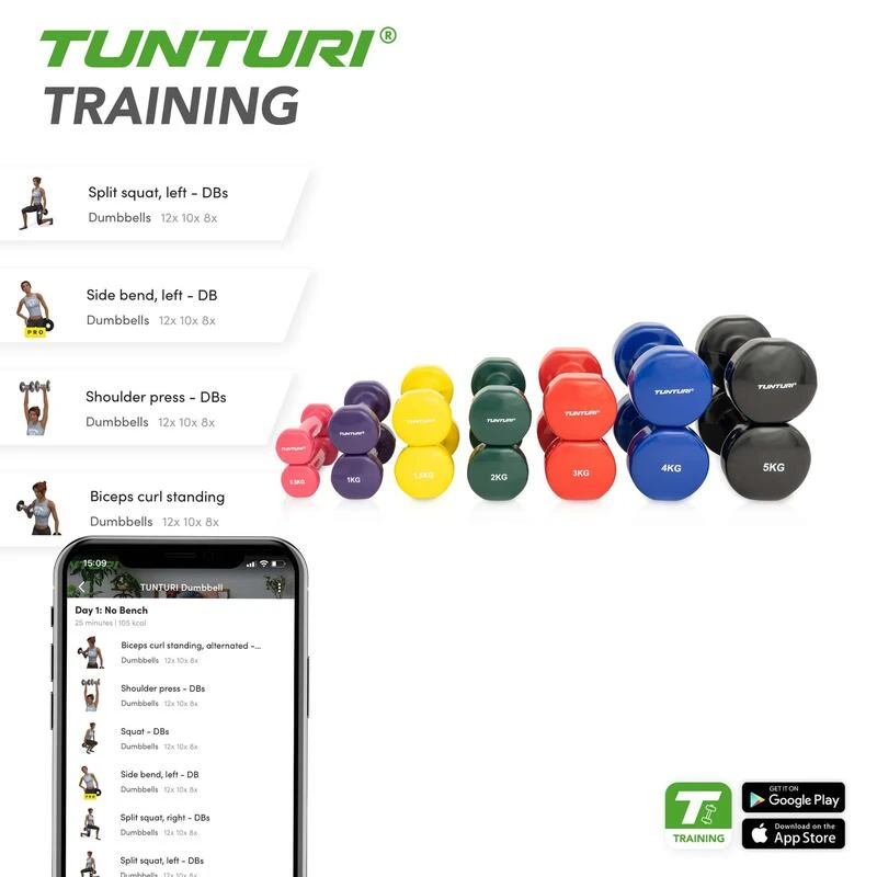 Compra en Decathlon Mancuernas de vinilo Tunturi Peso: 5kg Este producto es ideal para cualquier tipo de usuario, y es perfecto para entrenar en casa.